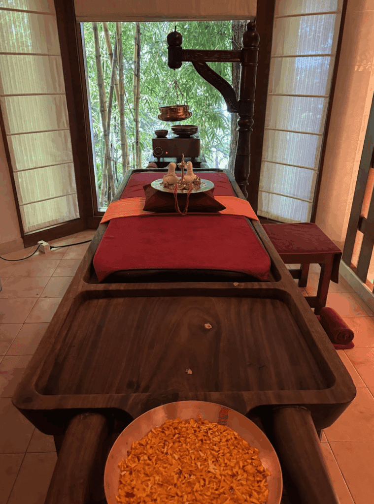 Each day included three or four treatments: multiple four-handed Abhyanga massages that seemed to melt time, Shirodhara with warm oil streaming over my forehead (I fell asleep almost instantly), acupuncture, reflexology, a body mud mask (also fell asleep), and Emotional Healing through hypnotherapy that left me reeling.